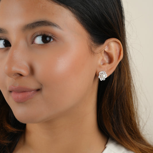 Flower Moon - Pearl and Silver Earrings